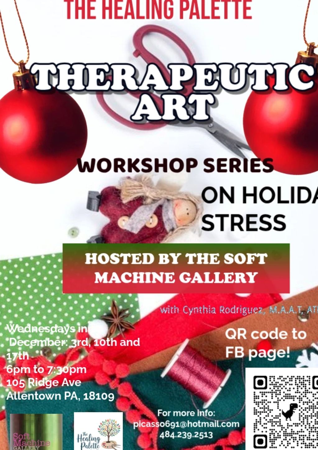 Workshops on Holiday Stress - Wednesdays in November. Pay in advance or at the door. Workshops will take place 12/3, 12/10 and 12/17.