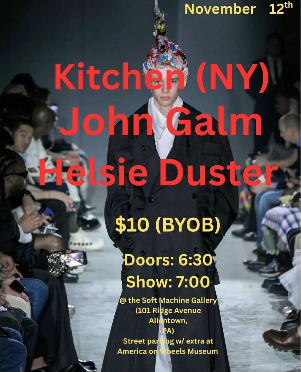 Join us for a quieter evening of music Wednesday 11/12 featuring Kitchen @kitchenokwhatever , John Galm @johmgalm and Helsie Duster @helsiedustermusic .